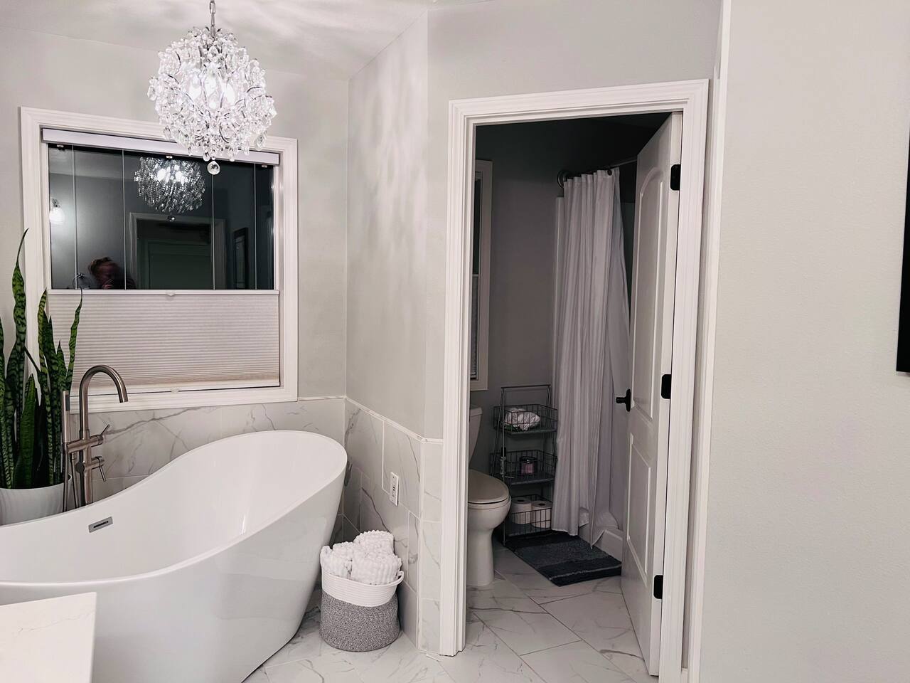 1 Bedroom • 1 Bathroom 1 Bath • Sleeps 1-2This private bedroom and gorgeous, private en-suite bathroom are on the second floor of a very large, shared home in the hills, exclusively for traveling professionals.