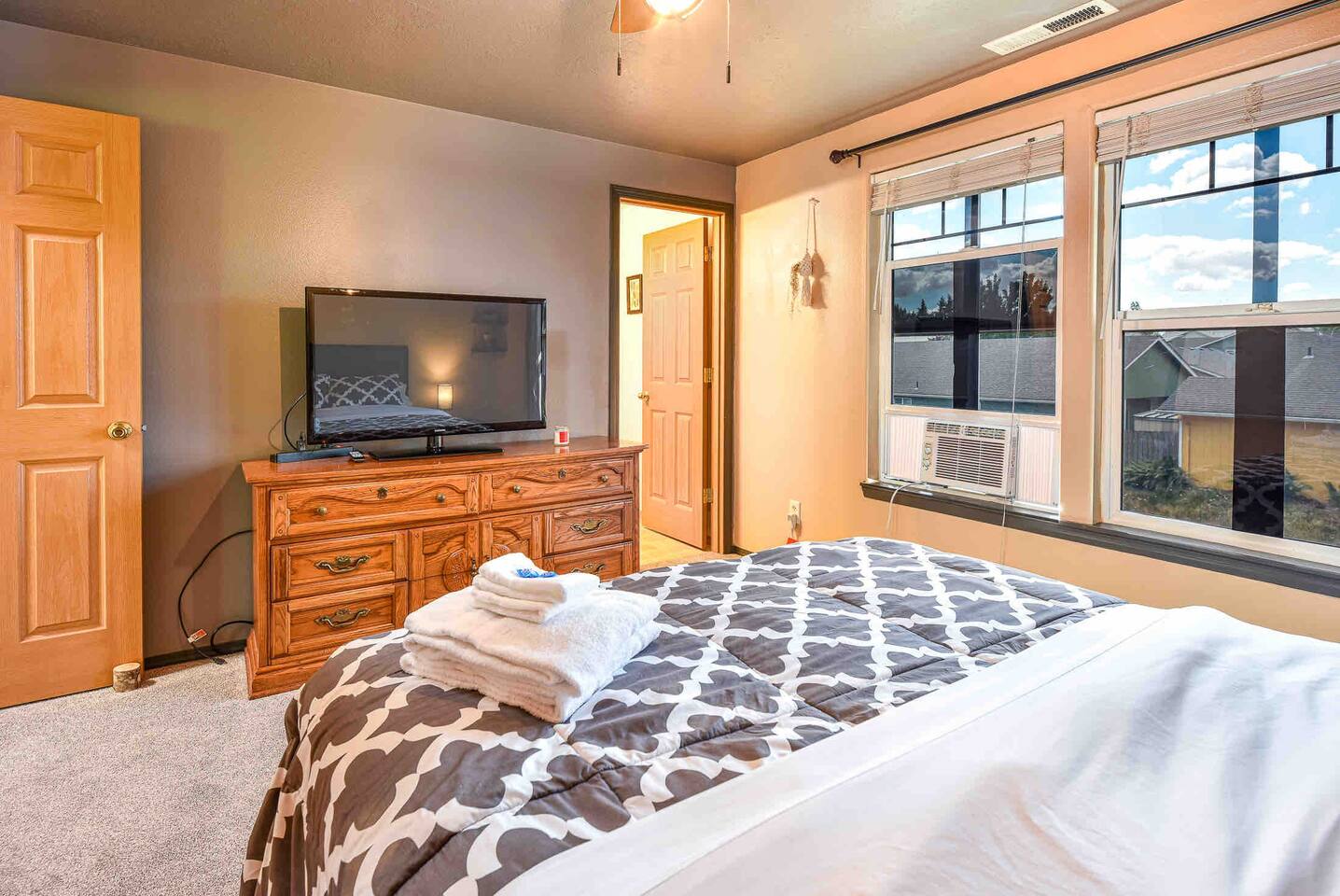 Your bedroom has recently been repainted and recarpeted.