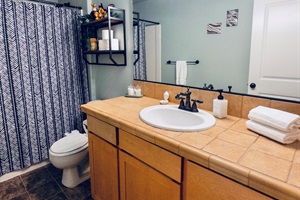 There is a hallway bathroom upstairs with a shower/tub combo.