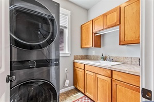 There is an outdoor kitchen with propane grill and kegerator (BYOB!), a fully fenced yard, and a three-car garage, plus driveway space for two more cars.