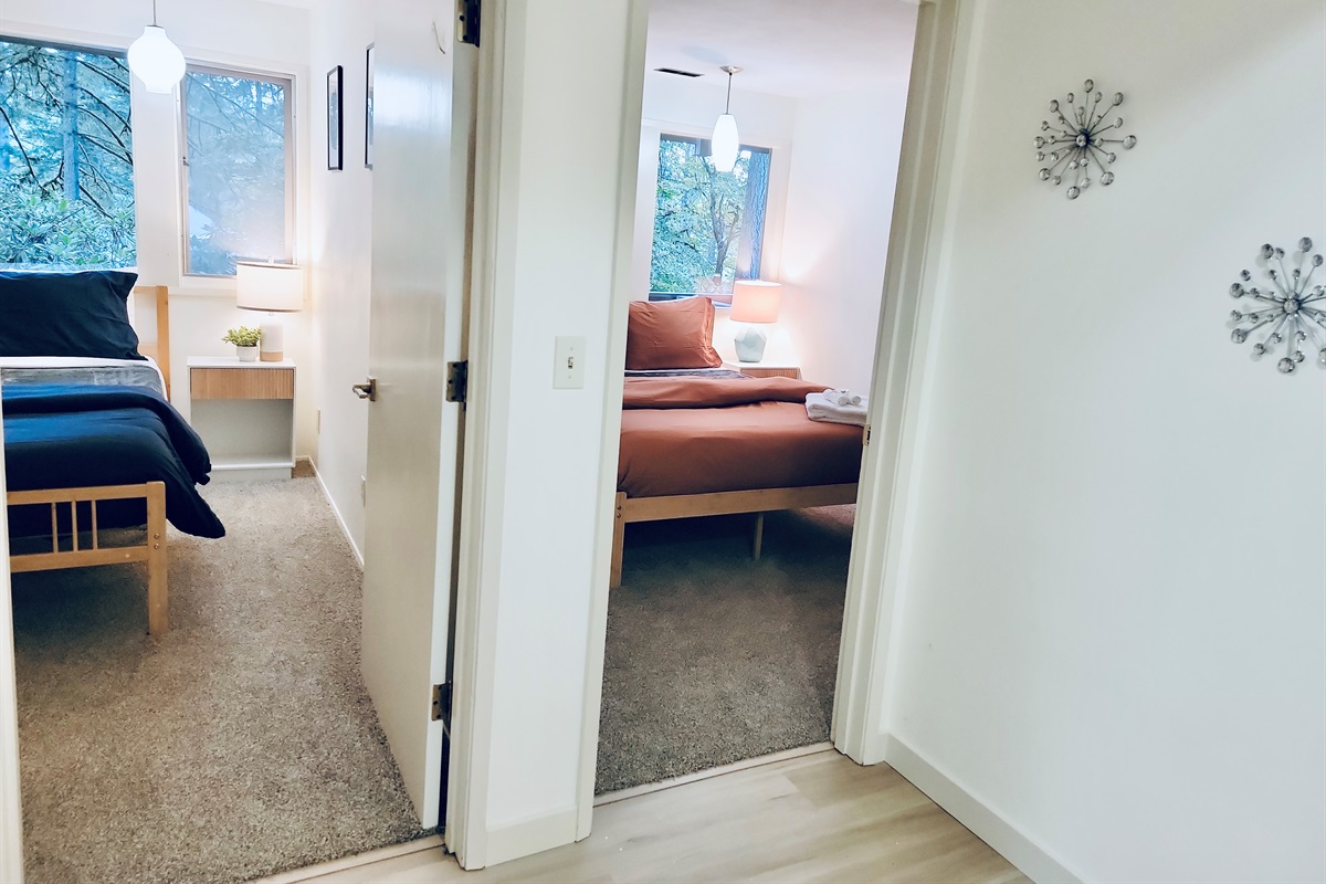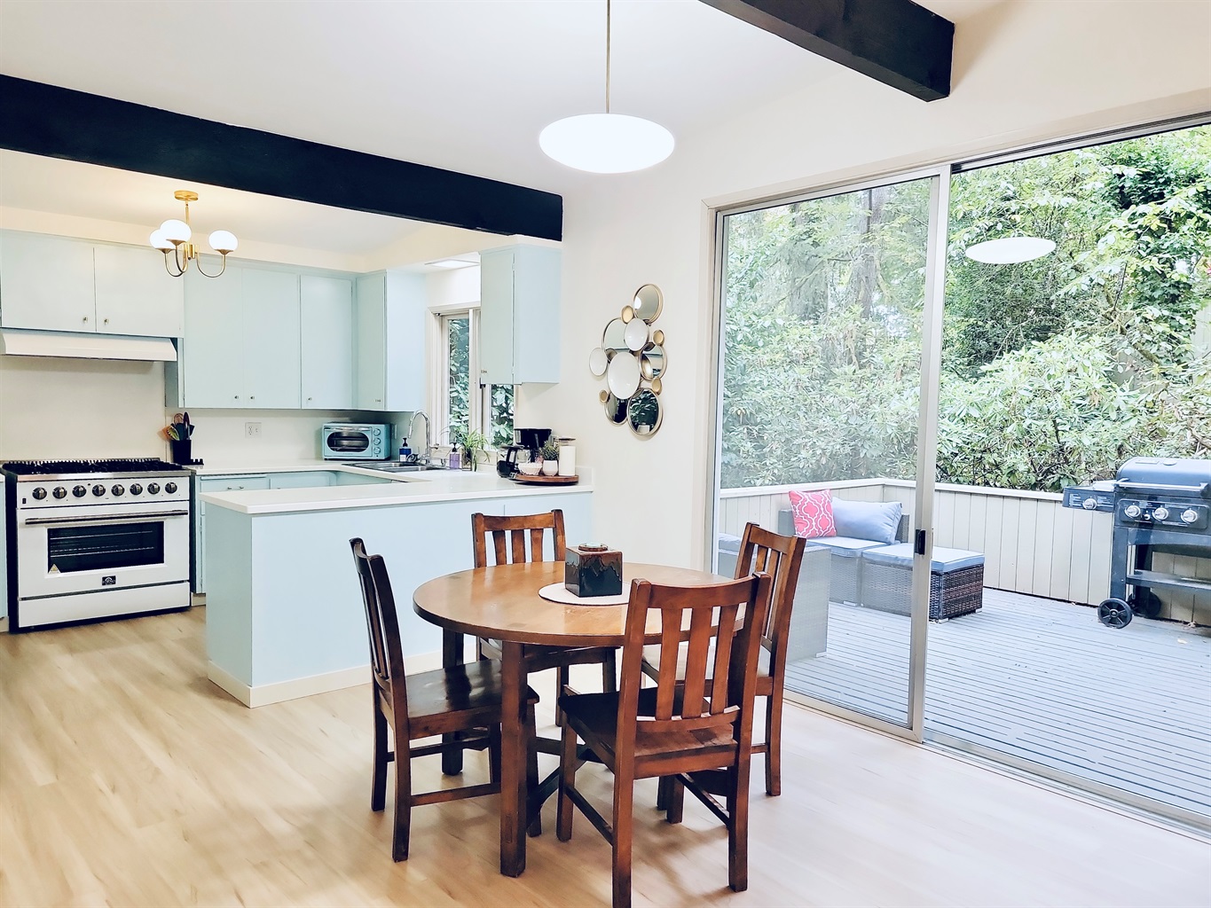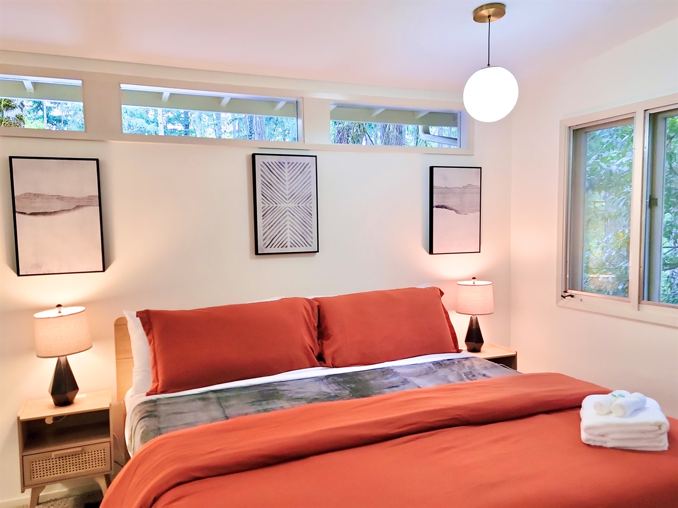 This architecturally significant mid-century home, has giant floor-to-ceiling windows, creating cascading twilights amongst the forested trees.