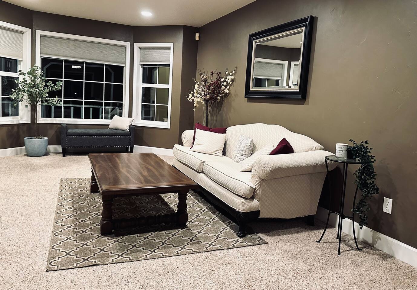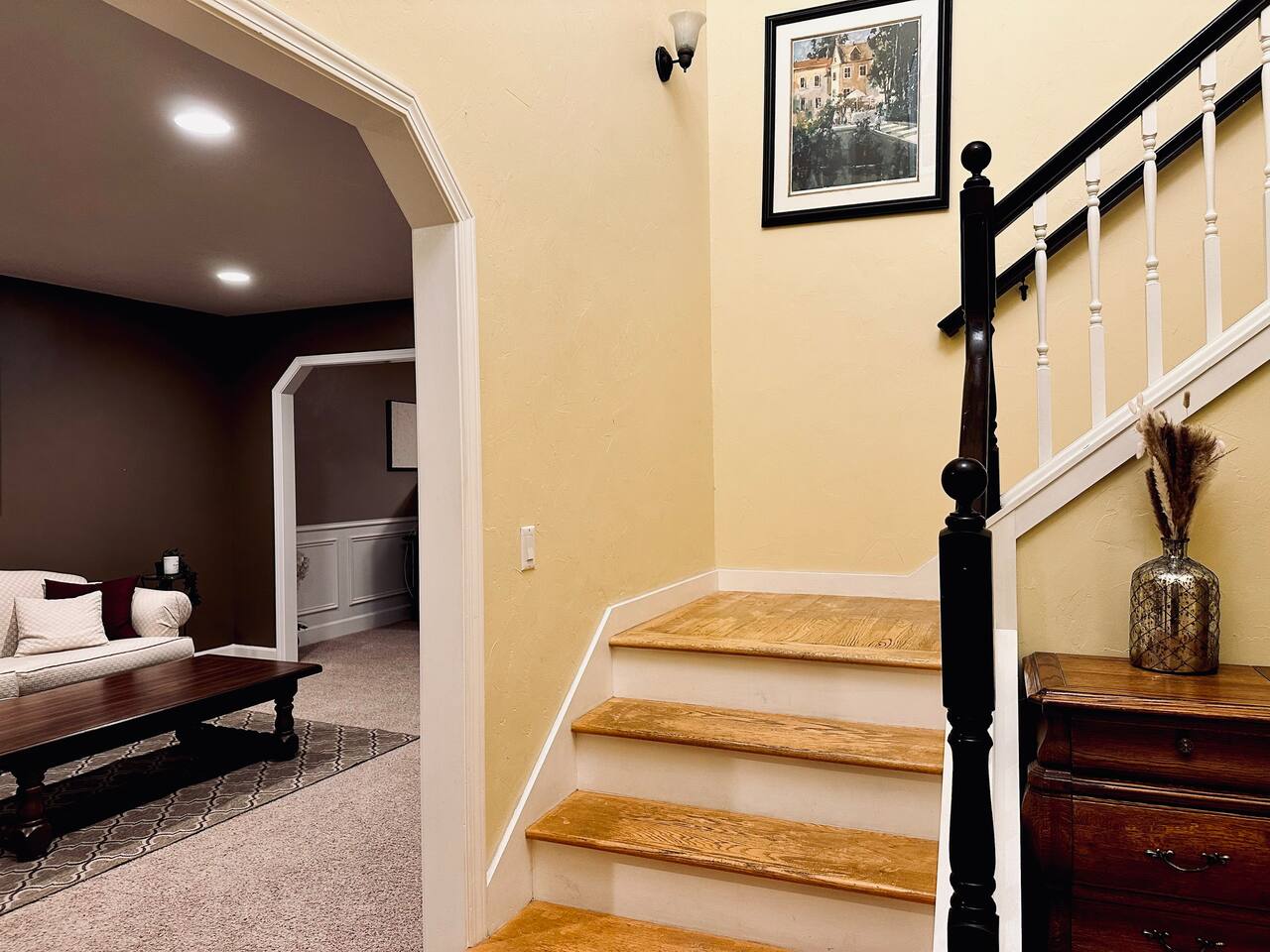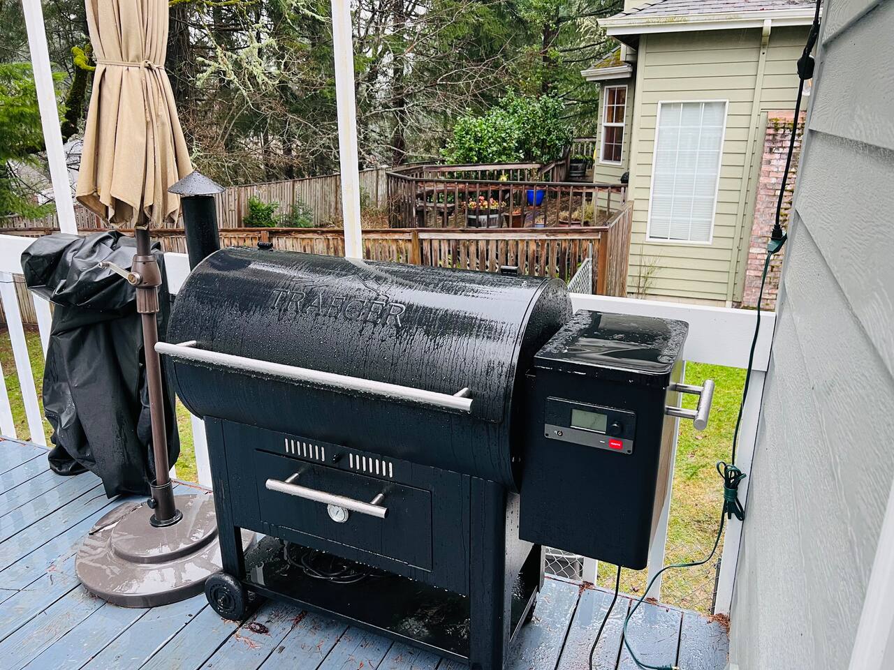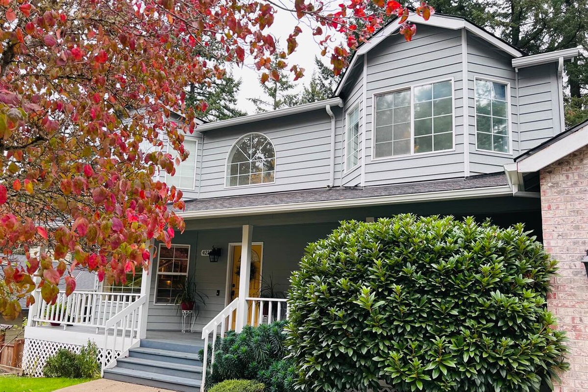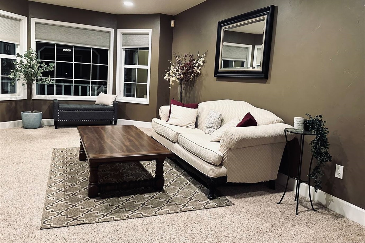 The two living rooms, indoor fireplace, free laundry, and an outdoor deck with Traeger grill and fire pit, are a perfect unwind after a long workday.