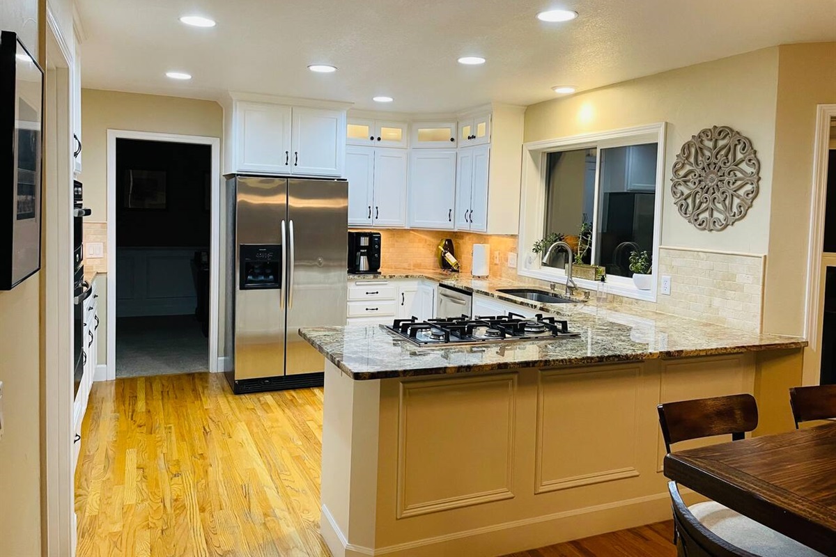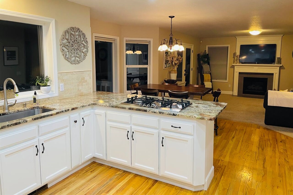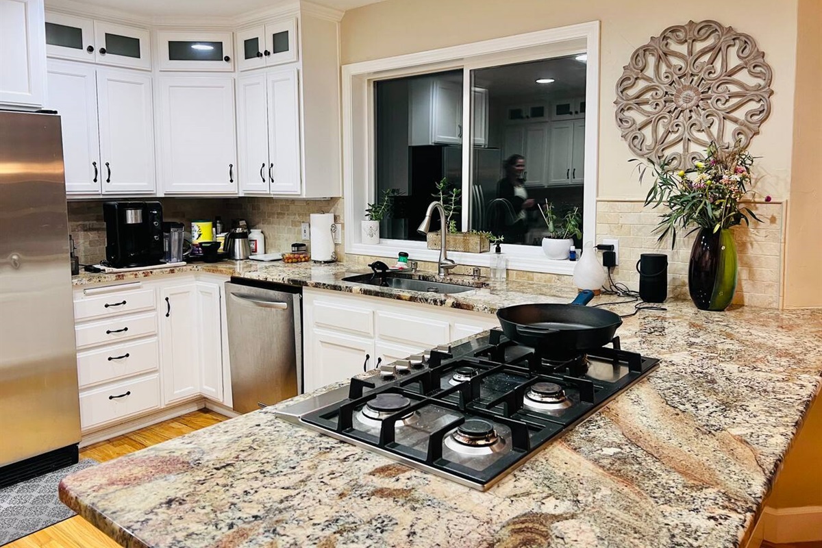 A family of deer graze outside the window of the large gourmet kitchen, which you have full access to.